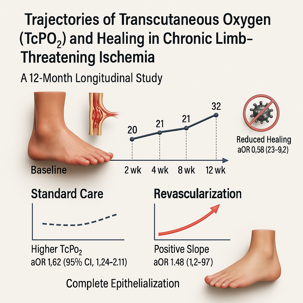 Conclusion: Trajectory-based TcPO₂ monitoring (level and slope) identifies an early, actionable window after baseline especially post-revascularization when timely escalation can improve healing. Findings support embedding serial TcPO₂ into CLTI care and motivate multicentre evaluations of effectiveness, cost, and equity.